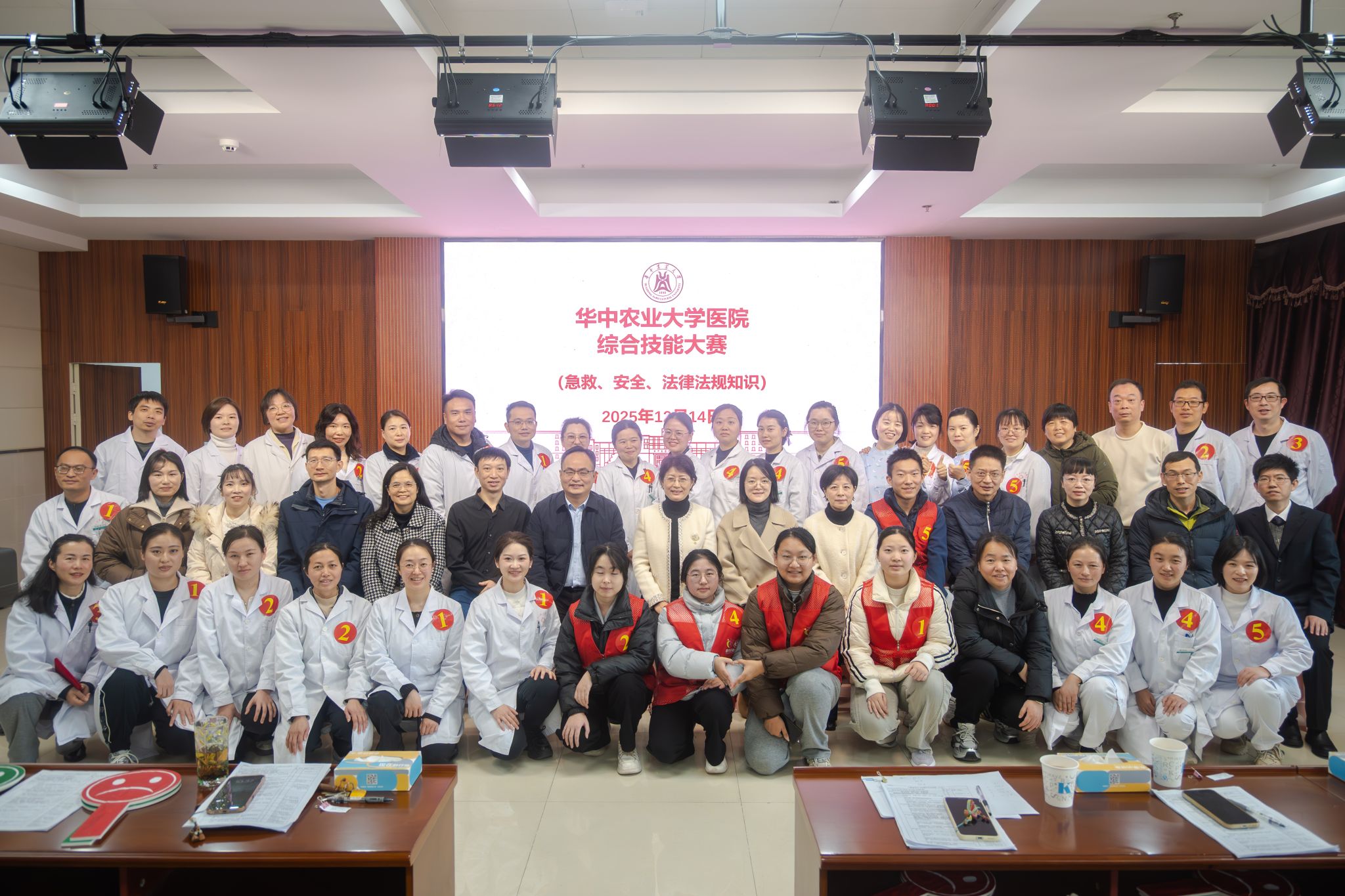 南湖新闻网讯(通讯员 欧金荣)为进一步夯实全院职工的急救技能与安全法律意识,强化多部门协同应急处置能力,12月14日上午,校医院在门诊514健康大讲堂开展2025年度综合技能大赛。活动汇聚了来自临床、护理、医技、公卫、药房、行政、挂号及学校红会学生骨干组成的五支参赛团队同台竞技。