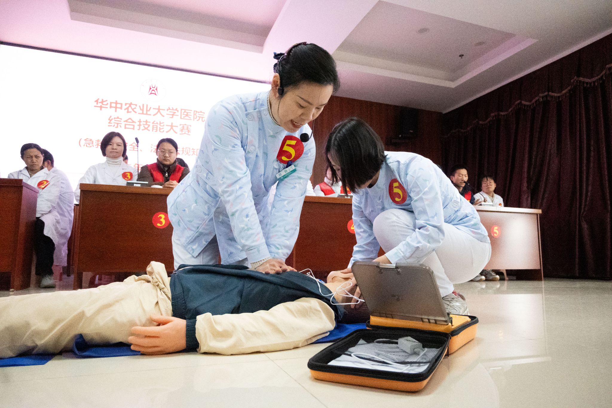 本次活动紧扣“急救技能、安全知识、法律法规”三大核心,旨在通过实战化、情景化的竞赛模式,全面检验和提升医务人员及红十字会志愿者的应急反应、规范操作及团队协作水平。比赛现场紧张有序,各队展现了极高的专业素养与昂扬的精神风貌。