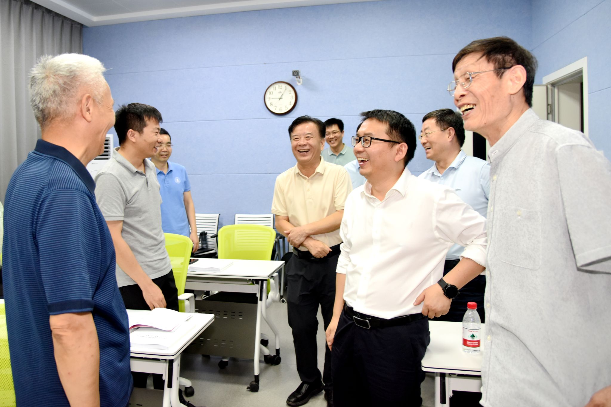 南湖新闻网讯(记者 川竹)6月19日上午,校党委书记姚江林,校长严建兵,校党委常委、副校长杨少波,校党委常委、学校办公室主任李金发一行到湖北省青教赛学校集训现场——教工活动中心智慧教室,看望我校参赛选手、指导课堂教学集训等备赛情况。